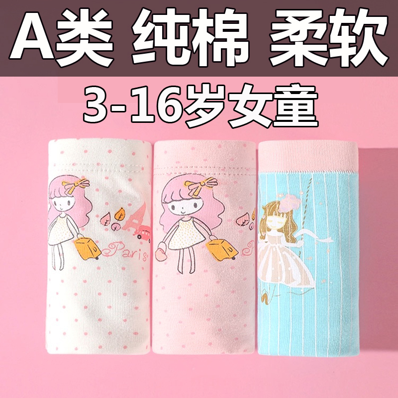 【产品名称:儿童内裤女童平角纯棉12岁小女孩中大童初中少女不夹屁屁女宝a类】