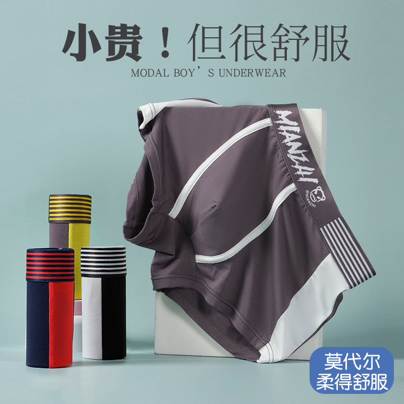 【产品名称:青少年男孩中大童平角四短裤男童内裤儿童纯棉100%全棉冰丝莫代尔】