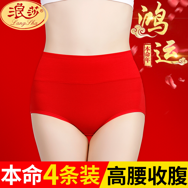 【产品名称:浪莎本命年属兔内裤女红色纯棉高腰全棉大码中低腰女士三角裤兔年】