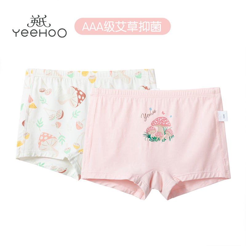 【产品名称:英氏AAA级艾草抑菌2条装女童亲肤蘑菇可爱平角内裤弹力不夹pp短裤】