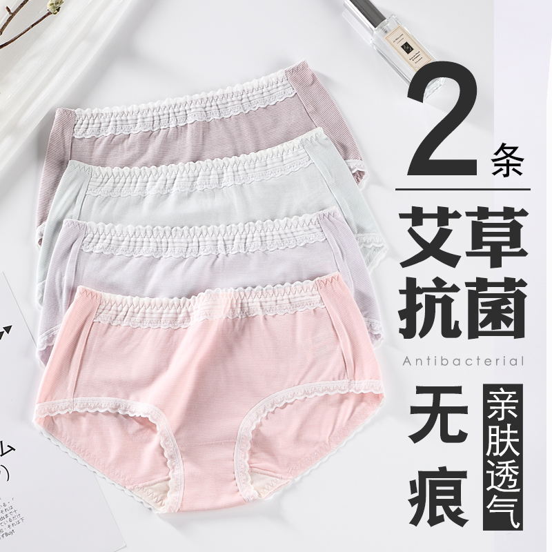【产品名称:爱莎女士内裤莫代尔中腰短裤艾草抗菌裆平角裤性感蕾丝无痕四角裤】
