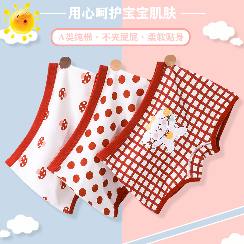 【产品名称:A类纯棉内裤女童过年红色宝宝平角中大童小女孩本命年儿童四角裤】