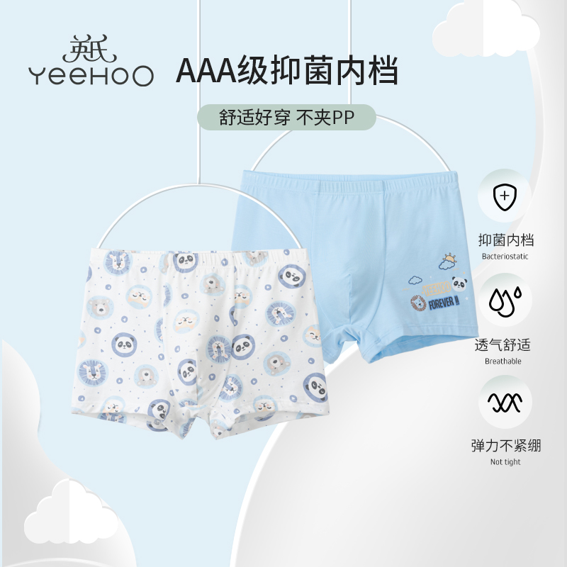 【产品名称:英氏男童抑菌2条装内裤儿童趣动物中大童平角内裤A类弹力抗菌短裤】