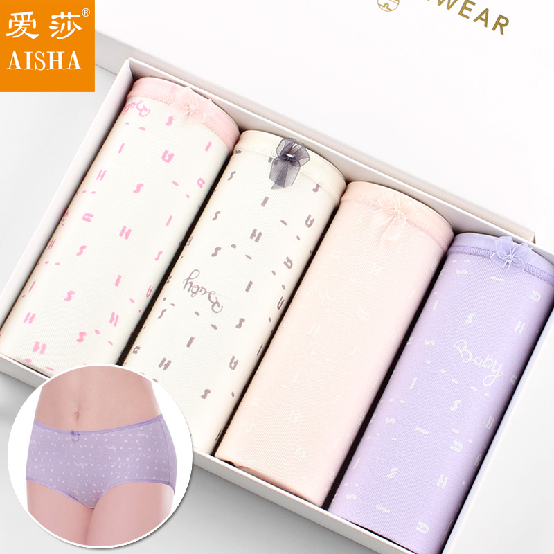 【产品名称:爱莎女士内裤中腰弹性纯棉字母印花蝴蝶结装饰包臀女生小平角裤衩】