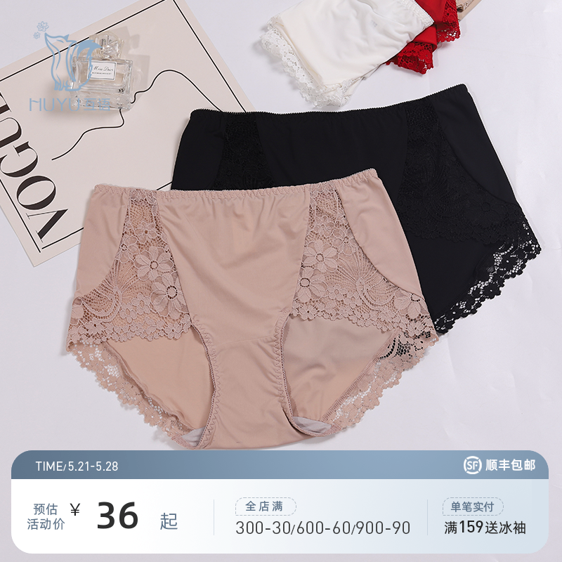 【产品名称:互语大码性感蕾丝内裤女士舒适中腰薄款透气无痕桑蚕丝底档三角裤】