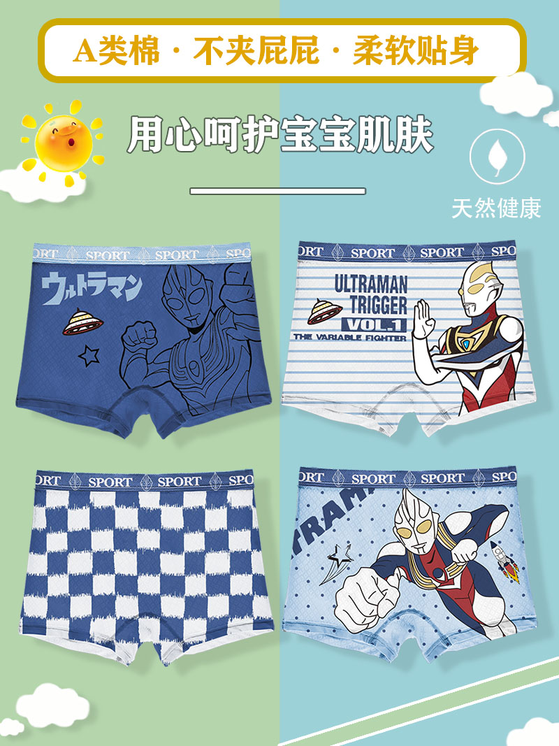 【产品名称:奥特蔓儿童内裤男童纯棉男孩宝宝平角四角全棉短裤中小大童夏季薄】