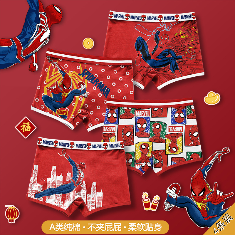 【产品名称:男童内裤纯棉儿童薄款纯棉秋款平角裤男孩宝宝卡通蜘蛛侠小童短裤】