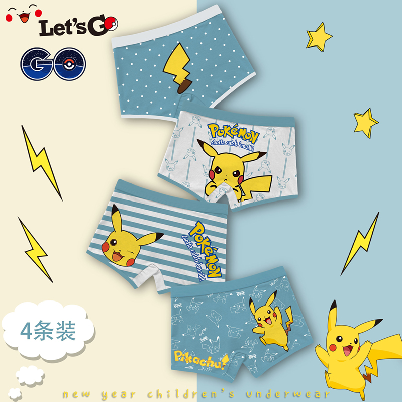 【产品名称:儿童内裤男童纯棉平角四角皮卡丘小男孩中大童不夹PP全棉短裤100%】