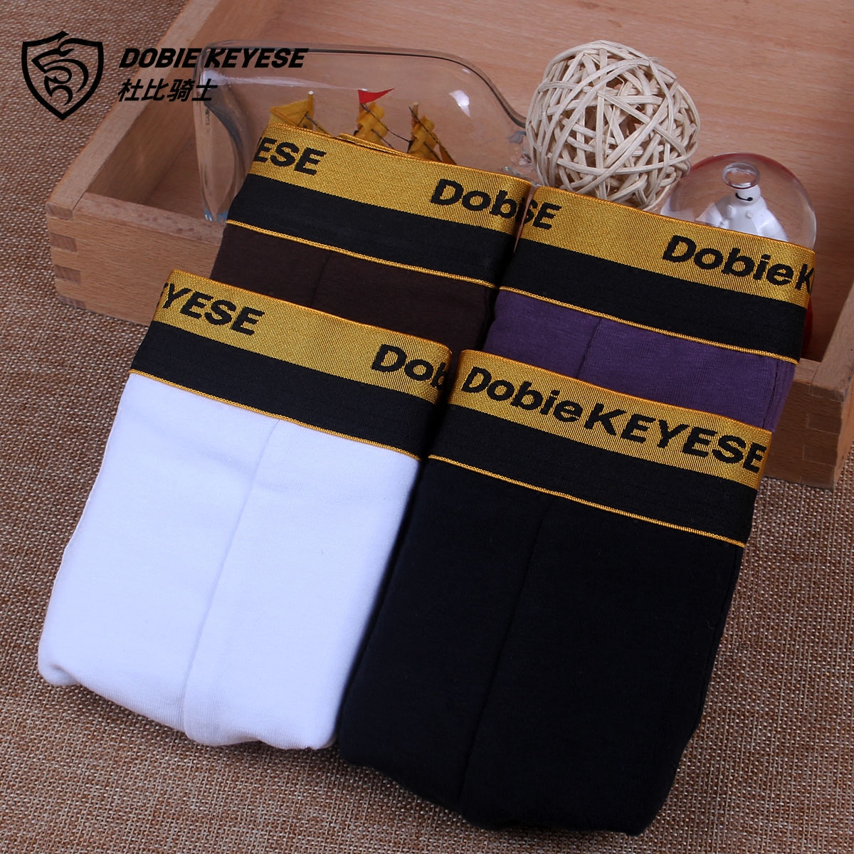 【产品名称:杜比骑士男内裤 纯色金边柔软弹力棉质透气时尚平角裤 包邮 2条装】