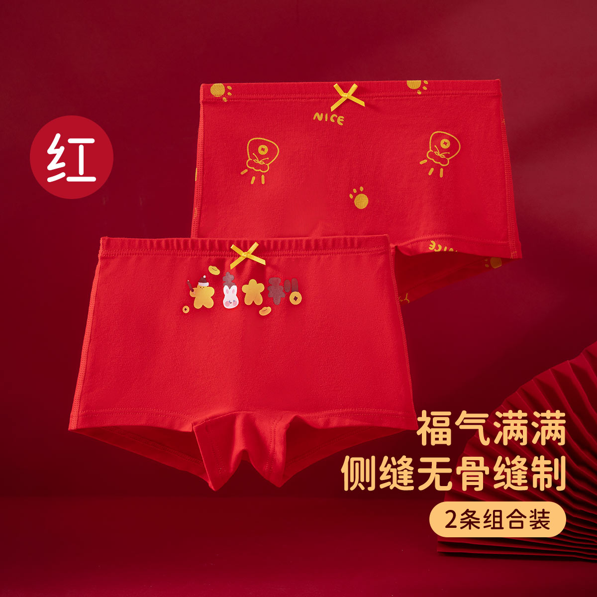 【产品名称:顶呱呱女童红色内裤儿童本命年纯棉平角中大童属兔年礼物四角短裤】