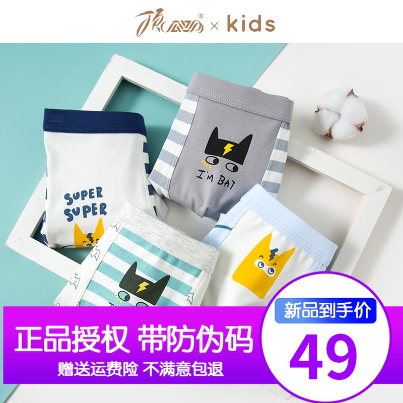 【产品名称:顶呱呱儿童内裤男平角纯棉男孩卡通四角裤中大童男童短裤12-15岁】