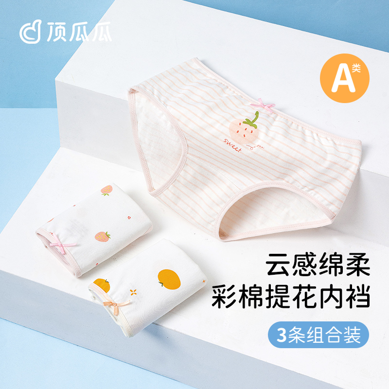 【产品名称:顶瓜瓜儿童内裤女孩小学生中大童纯棉三角裤头中腰全棉印花顶呱呱】