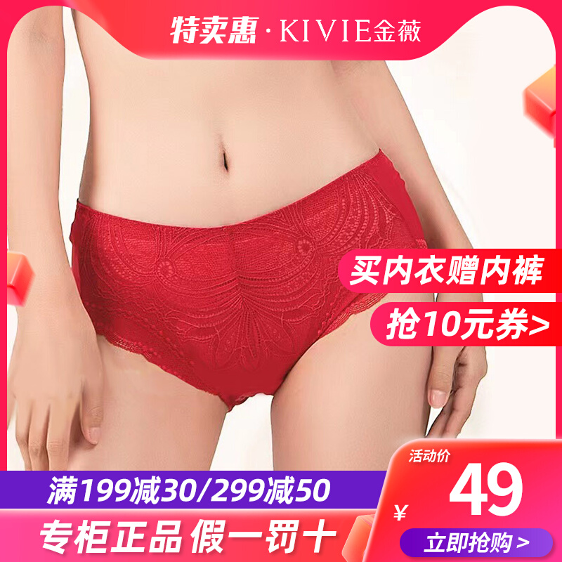 【产品名称:金薇性感女士蕾丝无痕慕斯魅丝烧花隐梦告白内裤中低腰红色平角裤】