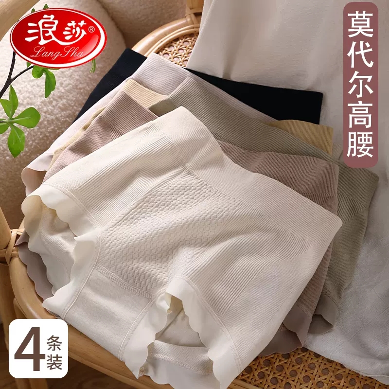 【产品名称:浪莎品牌莫代尔内裤女生高腰收腹2023新款100%纯棉裆抗菌女士短裤】