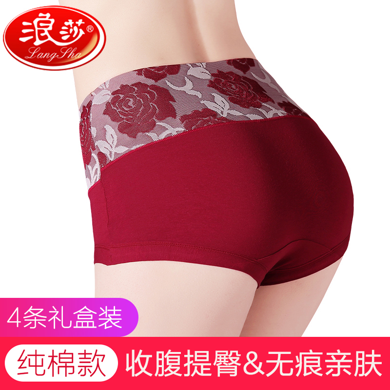 【产品名称:浪莎女士内裤纯棉中高腰三角底裤收腹提臀透气平角大码宽松短裤头】