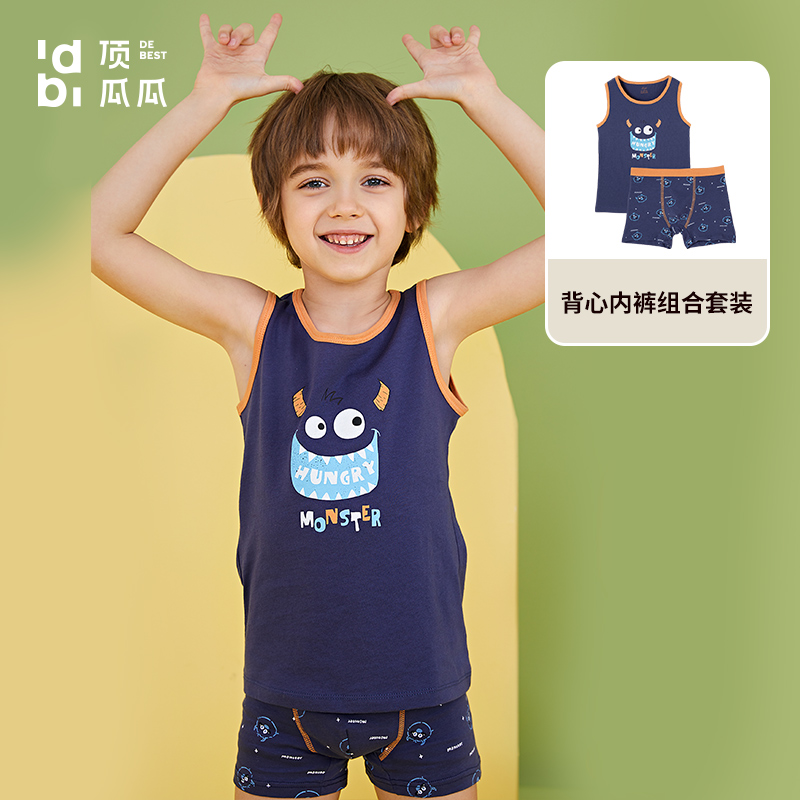 【产品名称:儿童背心内裤组合套装男孩卡通印花纯棉无袖休闲夏季打底衫顶呱呱】