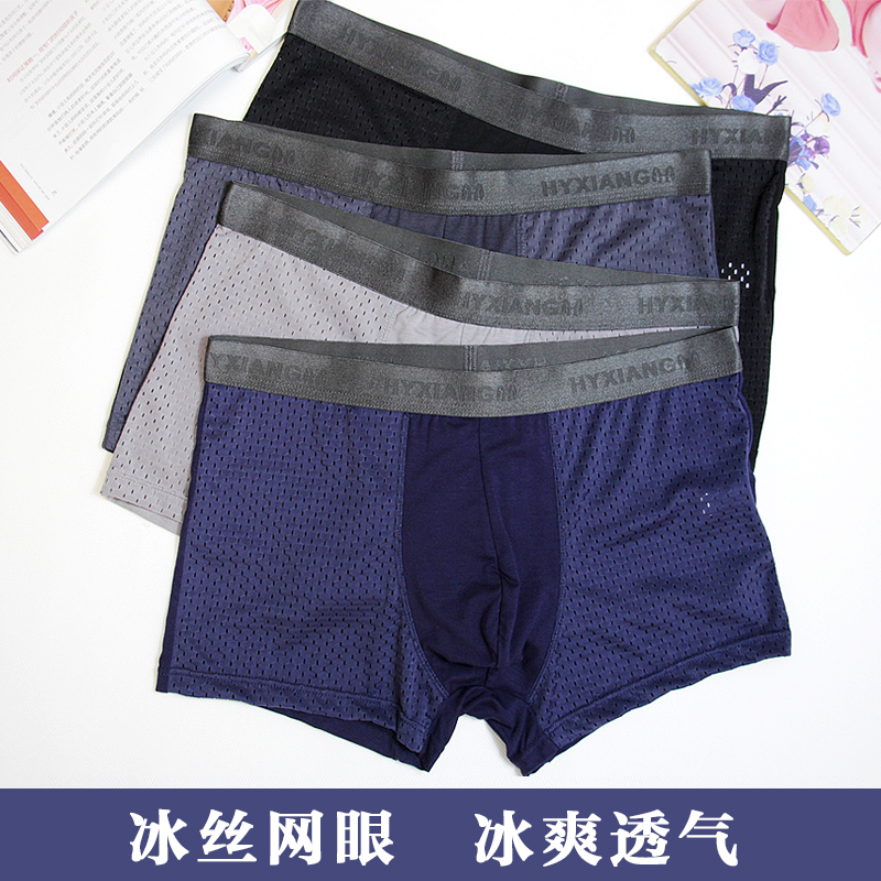 【产品名称:恒源祥男士冰丝网眼四角裤夏季透气宽松平角内裤加肥加大肥佬短裤】
