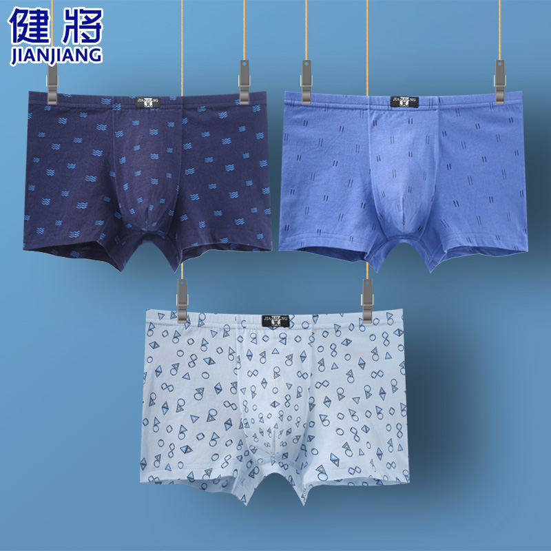 【产品名称:健将男士内裤透气纯棉平角裤时尚短裤中腰大码青年男式四角裤 3条】