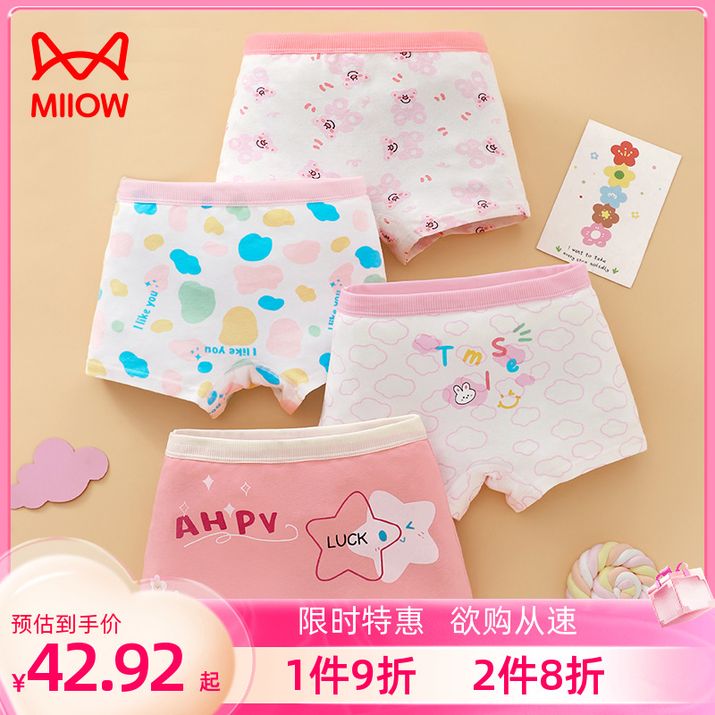 【产品名称:猫人儿童内裤女童纯棉平角短裤全棉春秋女孩女宝宝中大童四角底裤】