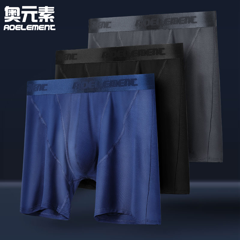 【产品名称:运动内裤男士防磨腿莫代尔专业跑步健身紧身长腿高弹加长款平角裤】