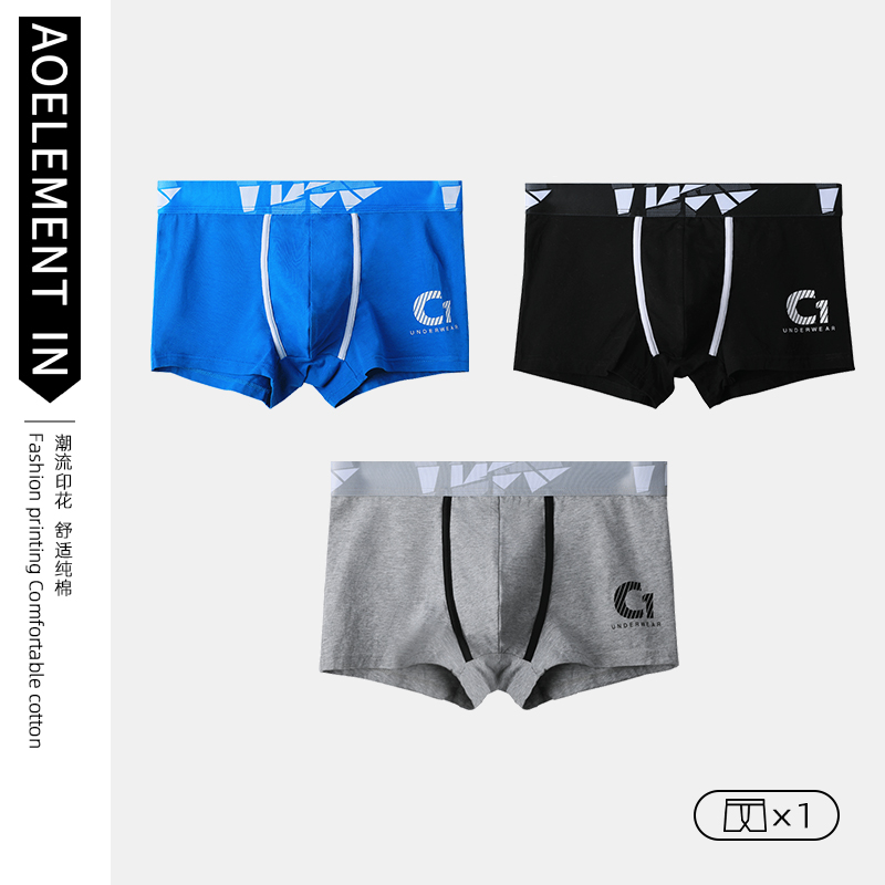 【产品名称:内裤男平角裤纯棉质男生潮流透气青年底裤头个性男士短裤衩四角裤】