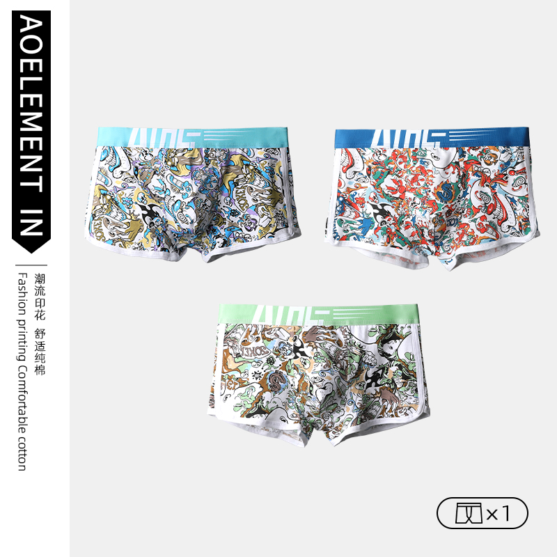 【产品名称:内裤男平角裤纯棉质男生潮流透气青年底裤头个性男士短裤衩四角裤】