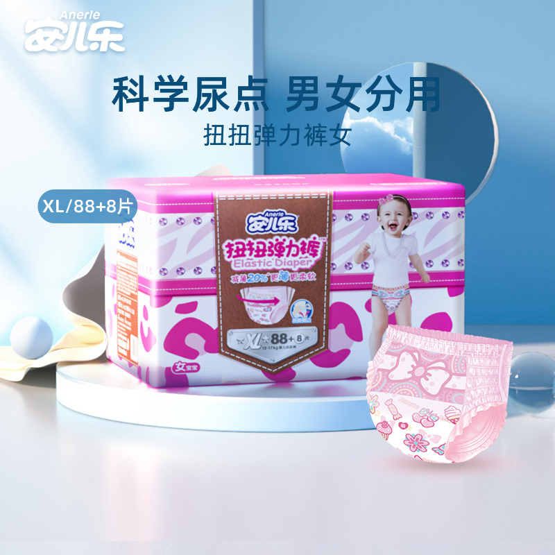 【产品名称:安儿乐扭扭弹力裤加大XL号88+8女宝96片拉拉裤成长裤小内裤爬爬裤】