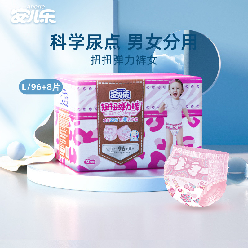 【产品名称:安儿乐扭扭弹力裤女宝成长裤拉拉裤小内裤大号L号96+8爬爬学步裤】