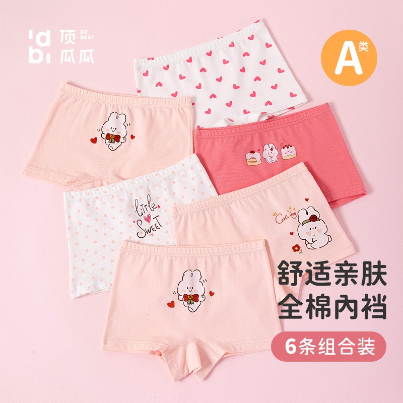 【产品名称:6条装 儿童内裤女孩纯棉质面料青少年学生三角平角中腰裤头顶瓜瓜】