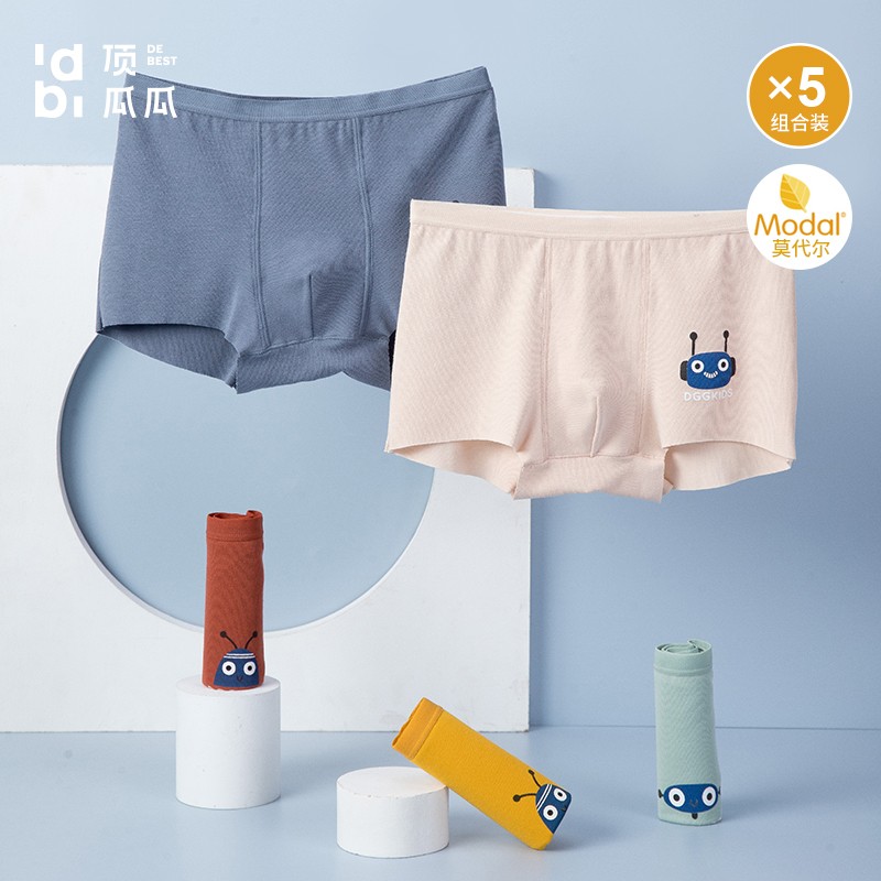 顶瓜瓜顶呱呱男童内裤夏季儿童莫代尔棉中大童平角短裤四角底裤