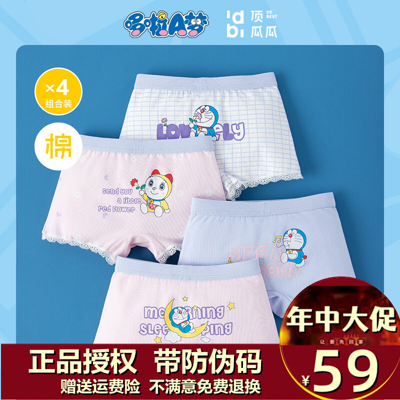 【产品名称:4条装 儿童内裤女孩纯棉多啦A梦卡通印花小童中童平角裤头顶瓜瓜】