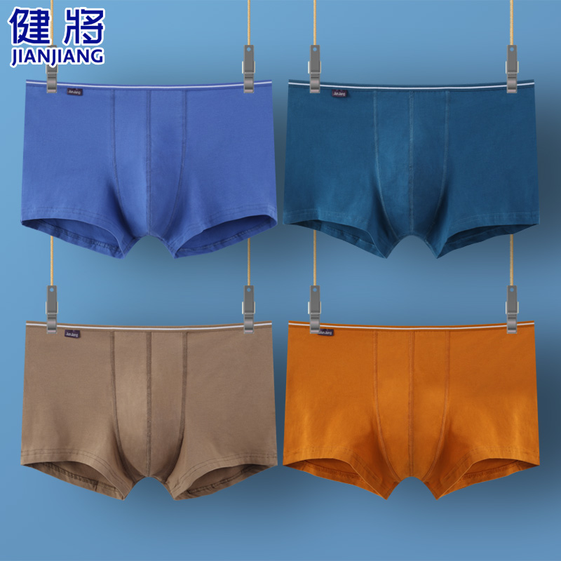 【产品名称:健将男士内裤透气纯棉平角裤100%全棉短裤弹力棉男式四角裤头 4条】