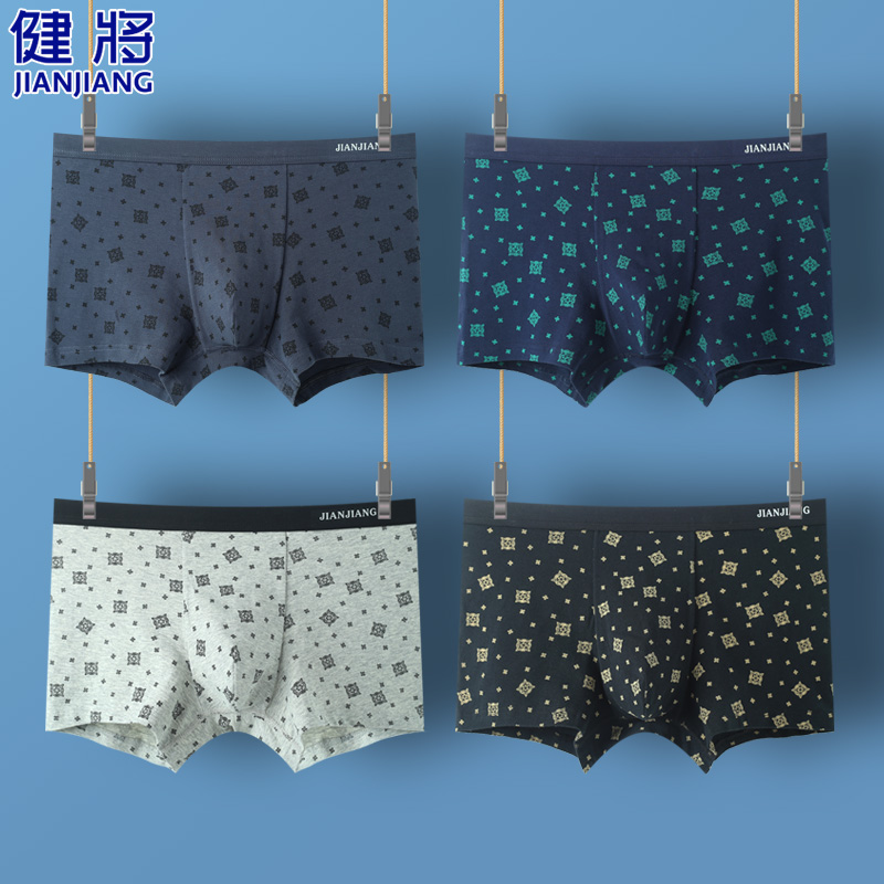 【产品名称:健将男士内裤透气纯棉四角裤100%全棉抗菌裆肥佬短裤男式平角短裤】