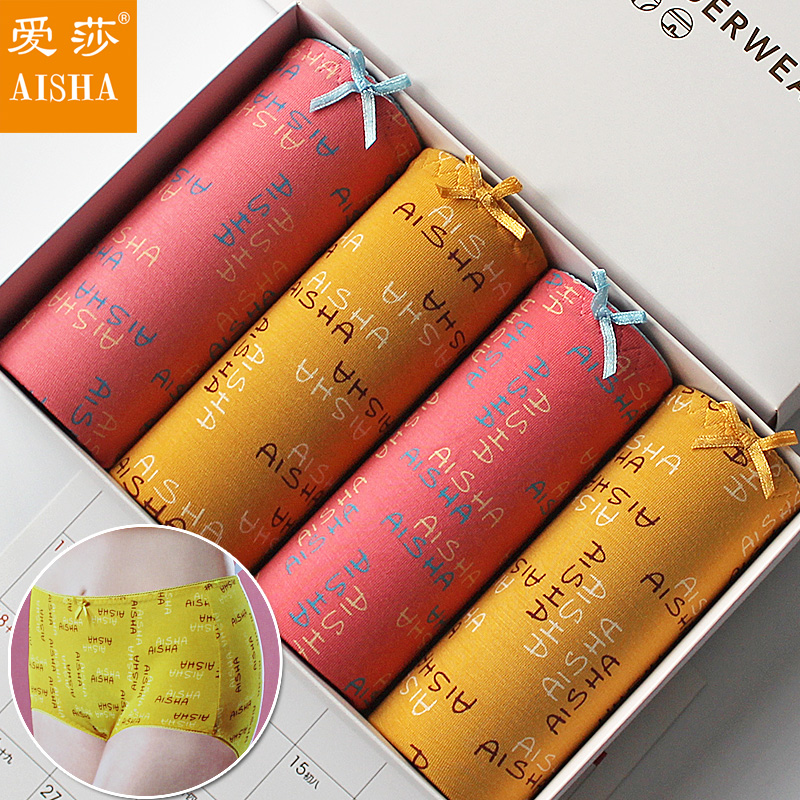 【产品名称:爱莎女士内裤高腰竹纤维印花裤衩包臀弹力短裤透气女生小平角裤头】