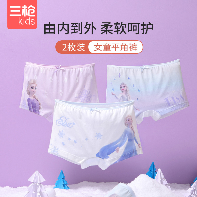 【产品名称:三枪儿童女童内裤A类纯棉抑菌迪士尼艾莎女童平脚裤透气打底内裤】