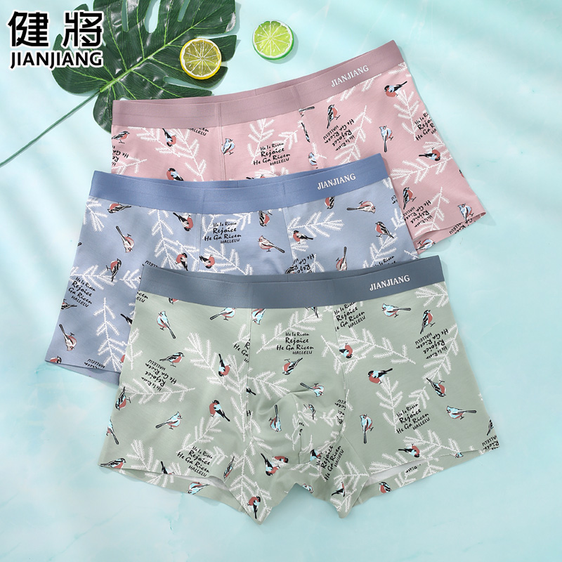 【产品名称:健将男士内裤男透气莫代尔冰丝个性印花平角裤青年短裤大码四角裤】