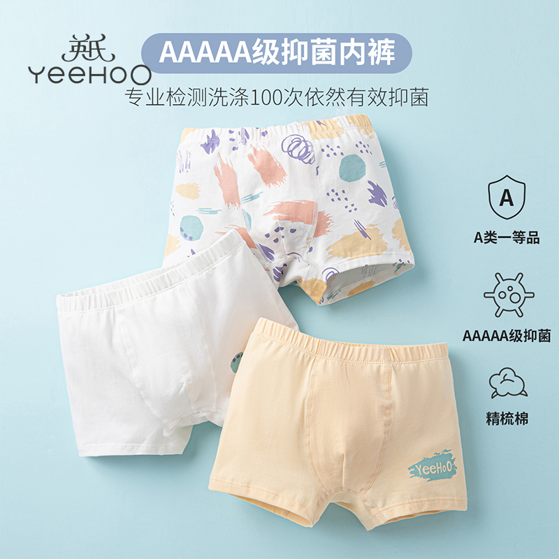 【产品名称:英氏儿童透气5A全面料抑菌平角内裤2023四季款男童纯棉短裤3条装】