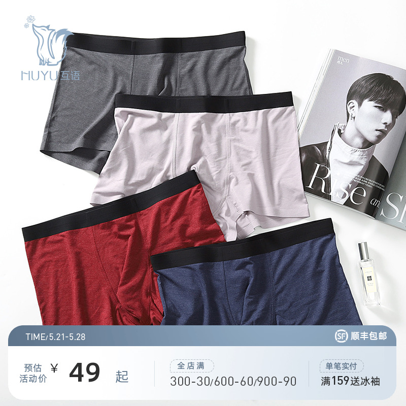【产品名称:互语简约纯色舒适透气纯棉档内裤男生青年中高腰平角底裤衩四角裤】