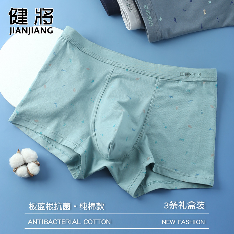 【产品名称:健将男士内裤透气纯棉抗菌裆短裤中腰大码平角裤青年运动四角裤衩】