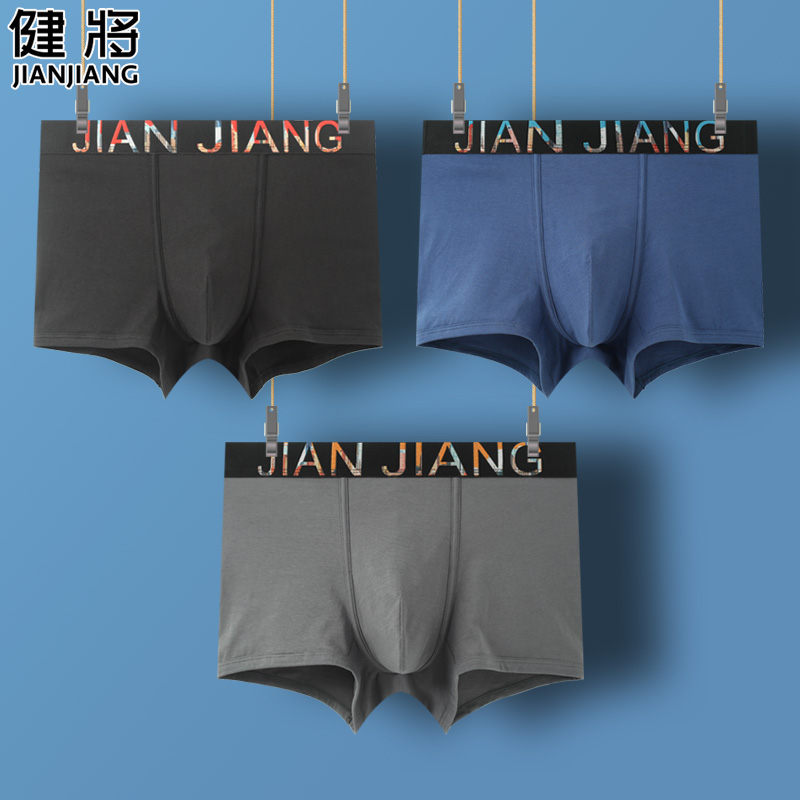 【产品名称:健将男士内裤男夏季透气纯棉四脚裤抗菌裆中腰大码短裤青年平角裤】