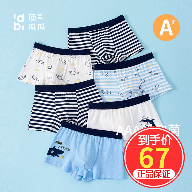 【产品名称:顶呱呱男童内裤纯棉儿童平角裤头短裤夏季四角A类抗菌卡通中大童】