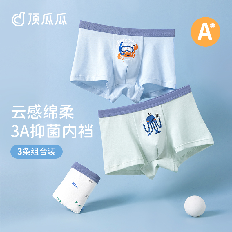 【产品名称:顶呱呱棉质儿童男童内裤平角纯棉小孩顶瓜瓜中大童学生男宝宝短裤】
