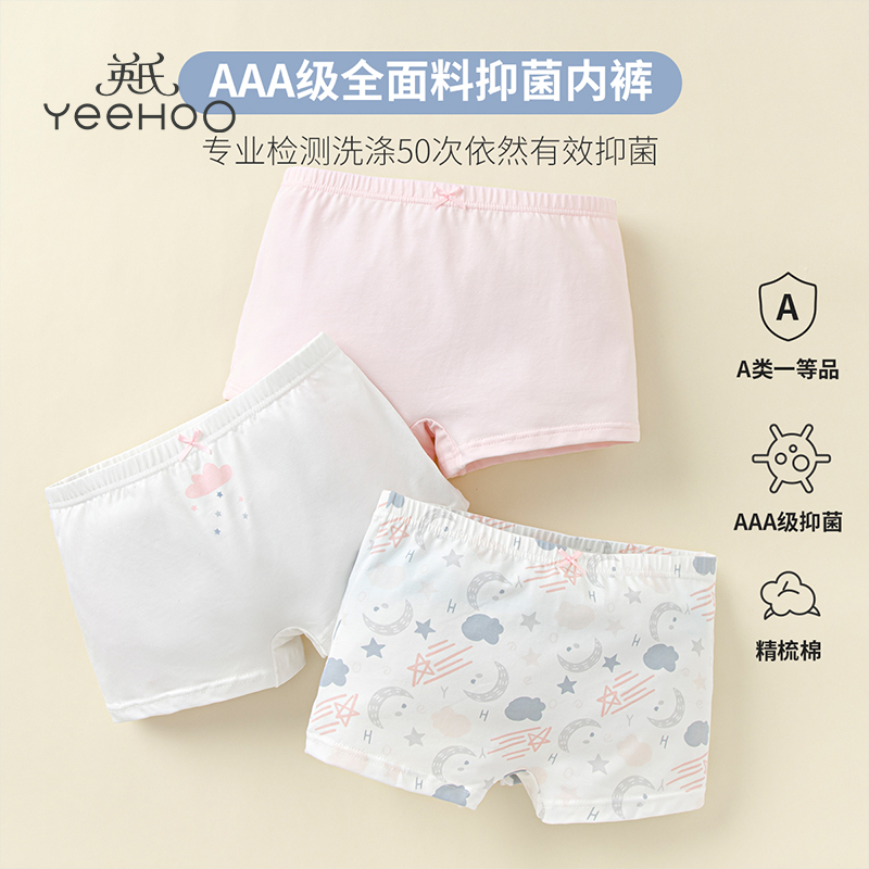 【产品名称:英氏3条装女童亲肤纯棉内裤2022四季3A全抑菌平角四角底裤不夹PP】