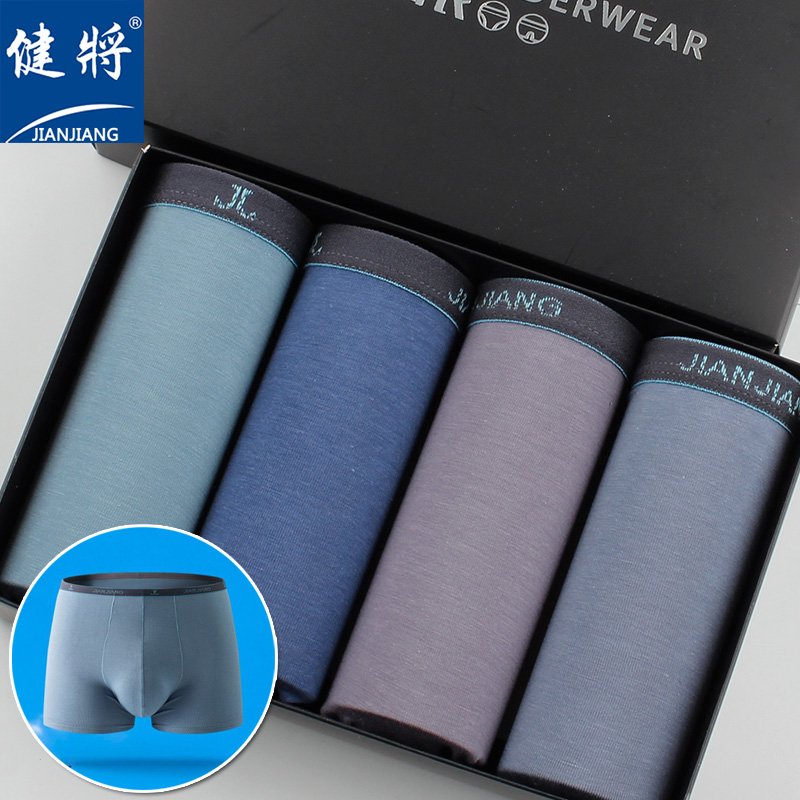 【产品名称:健将男士平角内裤粘纤棉5A抗菌肥佬裤衩窄边中腰加大弹力印花裤头】