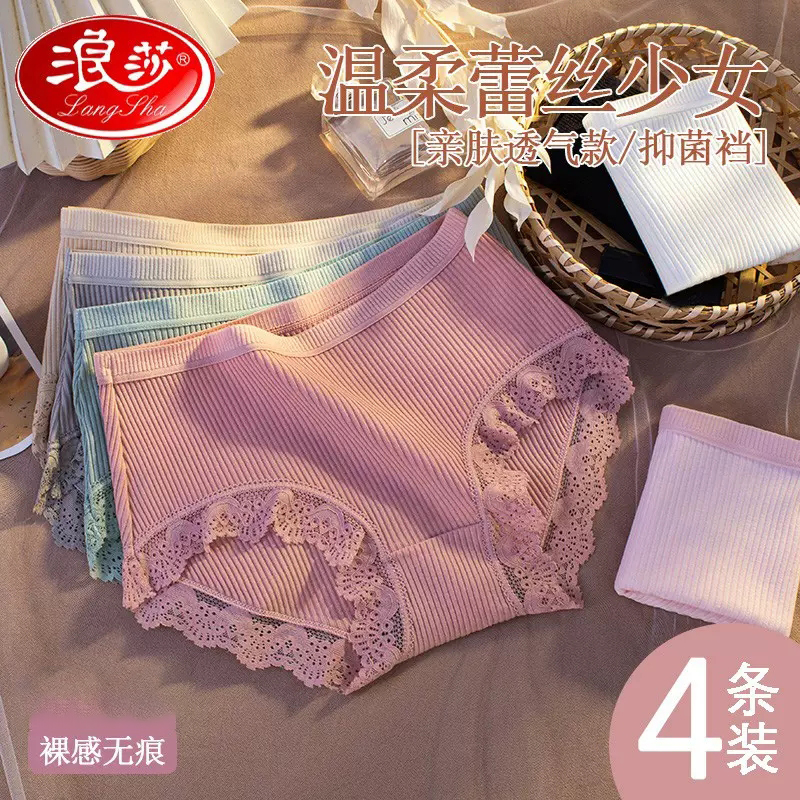 【产品名称:浪莎蕾丝女士内裤纯棉抗菌100%全棉裆性感高腰夏季女款三角短裤头】