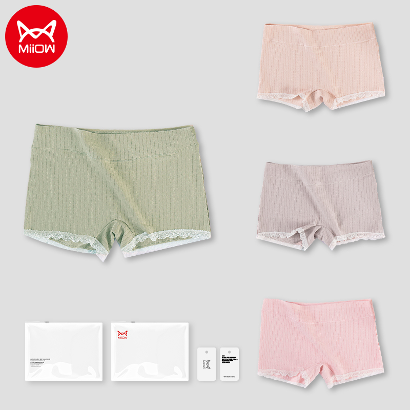 【产品名称:猫人中腰内裤女士安全裤透气棉质蕾丝平角裤短裤头少女生时尚爆款】
