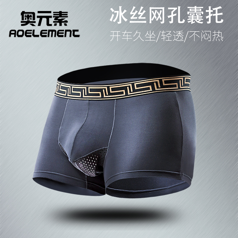 【产品名称:内裤男士精索平角裤冰丝静脉阴囊托提睾性感枪弹式分离曲张四角裤】