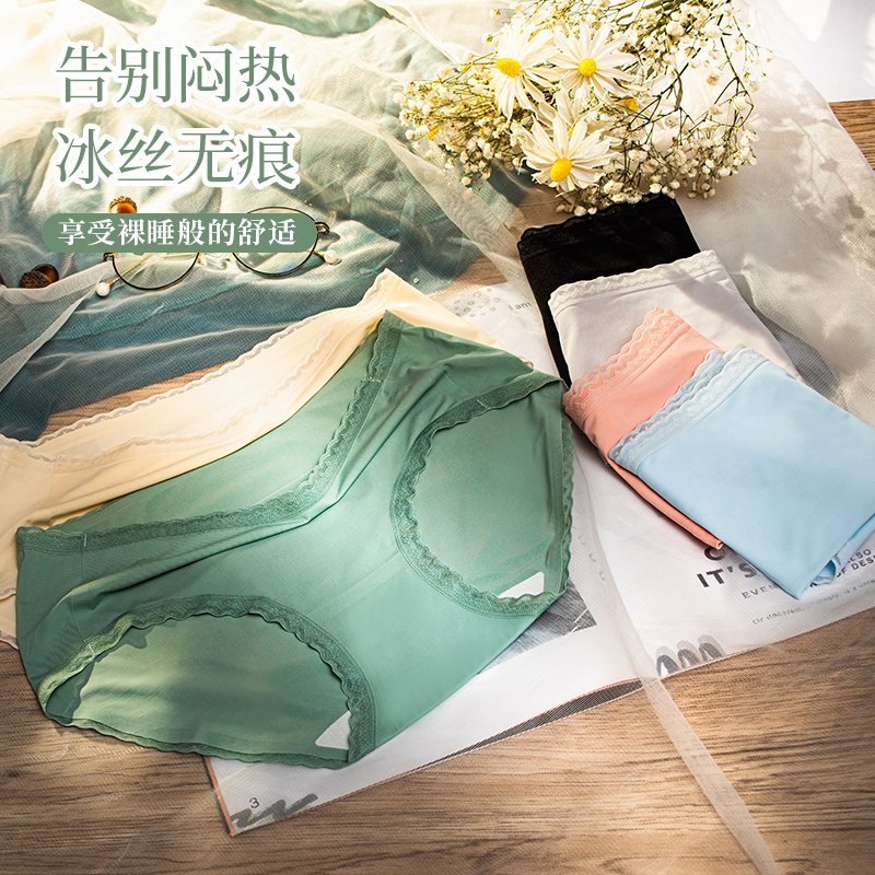 【产品名称:卡内舒无痕内裤女士冰丝少女生纯棉抗菌裆大码中腰夏季薄款平角裤】