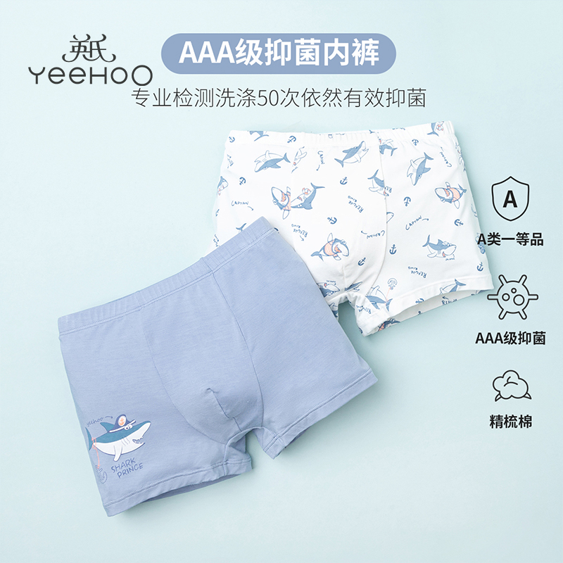 【产品名称:英氏儿童内裤男童四角透气3A抗菌平角裤2条装鲨鱼船长不夹pp底裤】