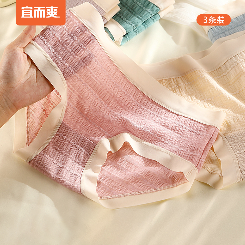【产品名称:宜而爽日系少女内裤新款纯棉底档抗菌高弹透气中腰性感女士三角裤】